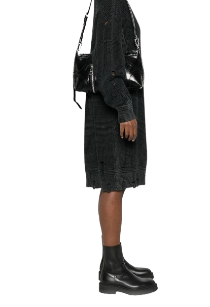 Design Details: Two large decorative zips on the front, a small metallic wings logo, and silver-tone hardware.
